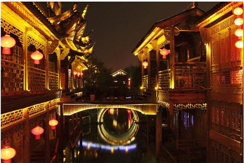 2、古建筑风格大多庄重、沉稳,亮化设计选择的光源,色温不宜太高,色彩不宜太多、太鲜艳,应以暖色调为主,尤其注意不能有溢散光。